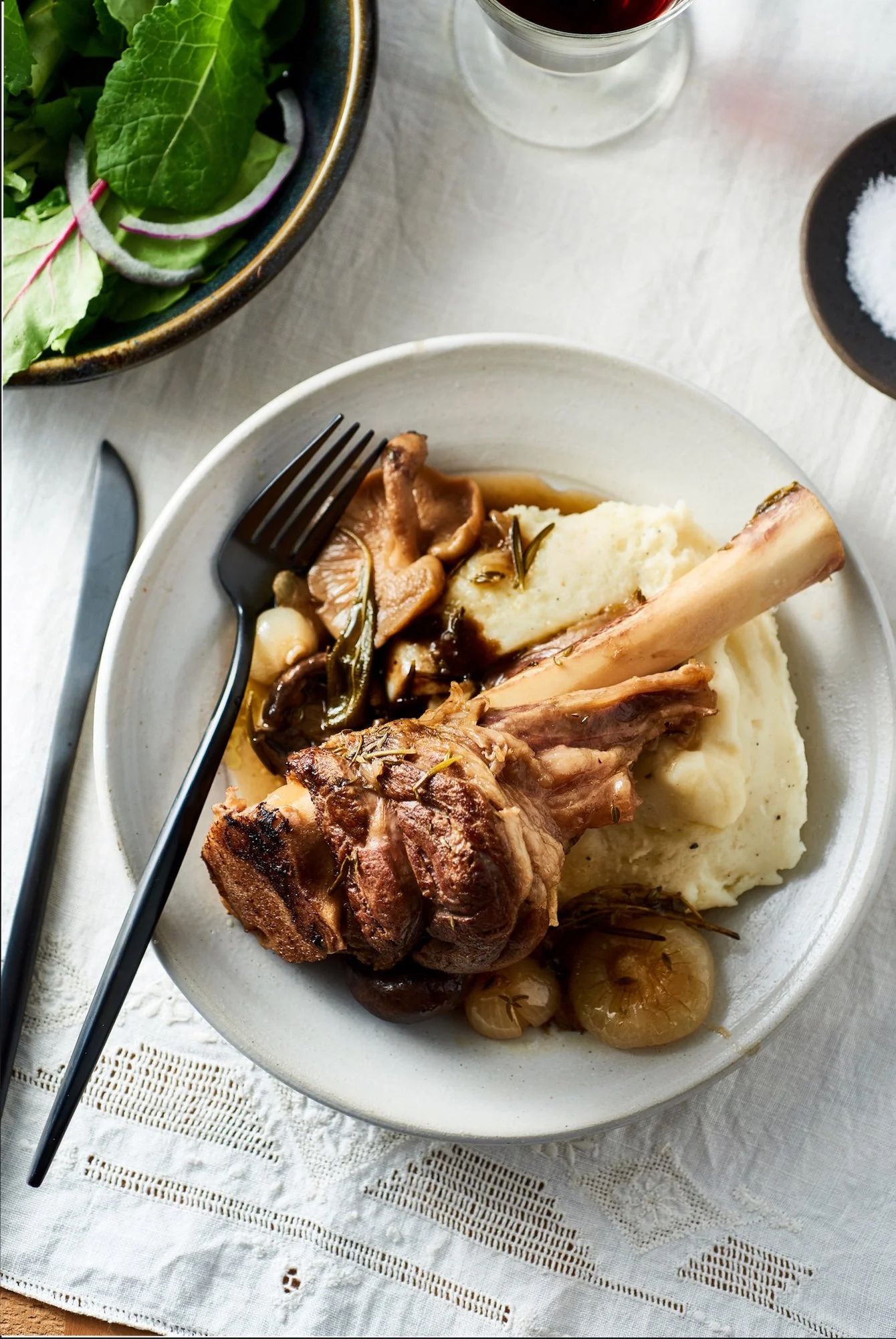 Whenever you’re wondering what to make for dinner, the answer should always be braised lamb shanks. They’re good for a party, great for a potluck, perfect for a night at home. They feel special but not too fancy, and are likely not something you’re already making over and over again on repeat. With onions, mushrooms, and red wine, this deeply flavorful recipe is warming enough to get you through the winter doldrums. Serve with your favorite starch -- crusty bread, polenta, rice, or egg noodles. It pairs well with anything, really. Or, if just fill up a bowl and eat as is. It’s that good.
