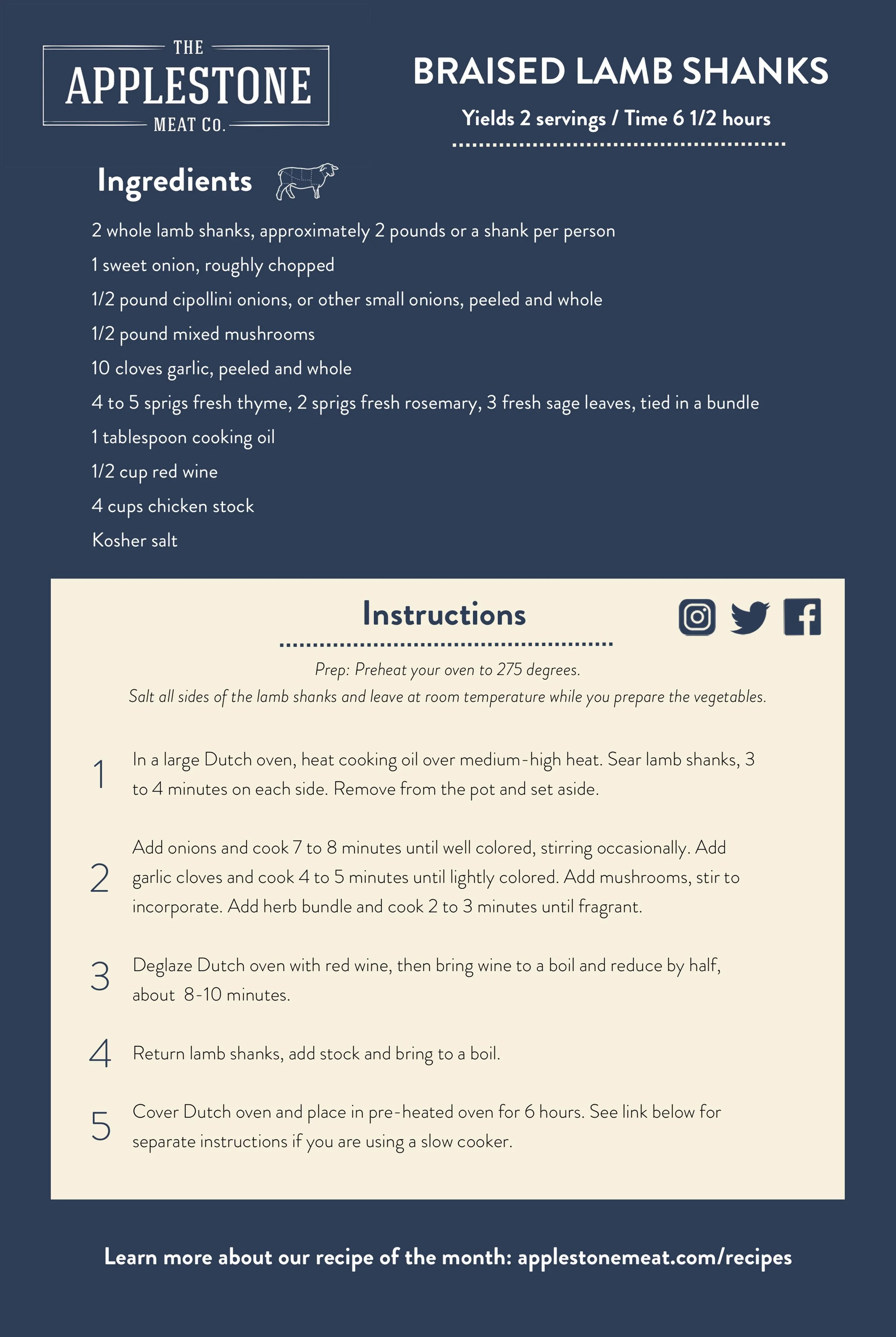 2 whole lamb shanks, approximately 2 pounds or a shank per person